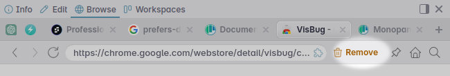 Just like in Panes, browser extensions also work in the browse panel (with the same caveats). When browser extensions are active for the current tab, the puzzle piece icon will show in the address bar.